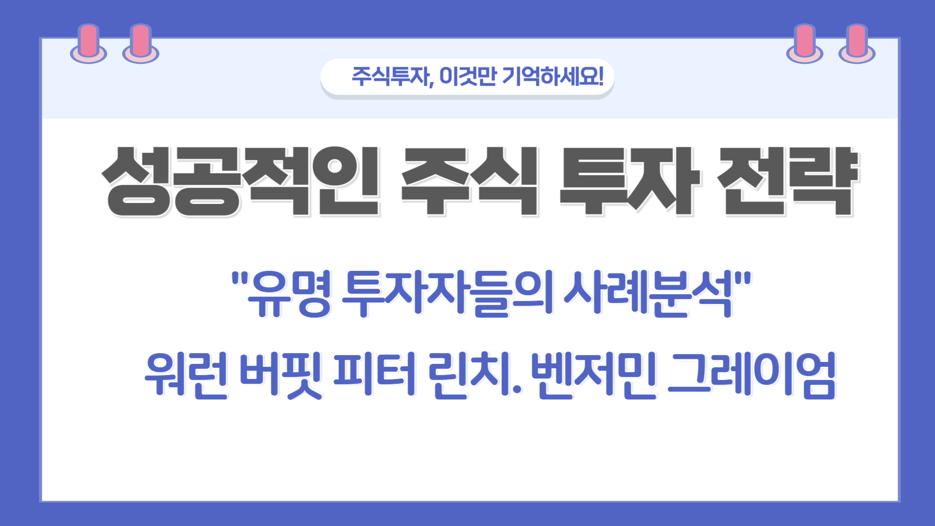 워런 버핏, 피터 린치, 벤저민 그레이엄 등 성공한 투자자들의 전략은 각기 다른 방식으로 주식 시장에서 성공을 거두는 방법을 보여줍니다. 이들의 철학과 방법론을 바탕으로 자신만의 투자 원칙을 수립한다면, 주식 투자에서 성공 가능성을 높일 수 있을 것입니다. 투자는 단순히 돈을 버는 것을 넘어, 체계적인 학습과 실천을 통해 지속 가능한 부를 쌓아가는 과정입니다.